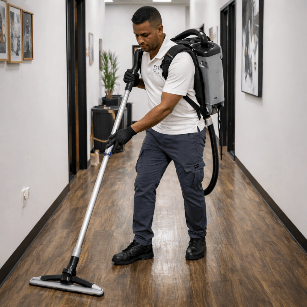 4. Commercial- grade backpack vacuums with HEPA filtration. We use high-efficiency backpack vacuums equipped with HEPA filters, designed to capture dust, mites, and allergens. These tools significantly improve indoor air quality and contribute to a cleaner, healthier, and safer environment.